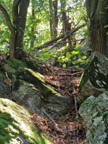 | Végre elfogyott a drótkerítés, volt egy nagy útkereszteződés is, de nekem a zöld jelzésen kellett továbbhaladnom, az erdőn keresztül. Na ez még rosszabb volt, mint a kerítés melletti bukdácsolás. | Nincs kép | |