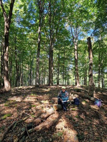 | Viszont volt pozitív élményem is, egy tisztáson részletes útmutató táblát találtam. Mivel a hegycsúcsra nem vezet út, ezért úgy döntöttem, hogy északról megkerültem a Tokár-tetőt és úgy KÉK-i irányból terveztem a torony-iránti felmenetelt. | ![]() | |