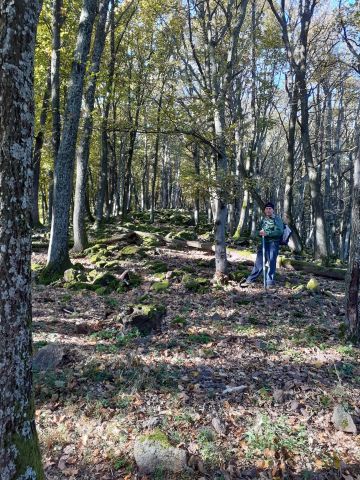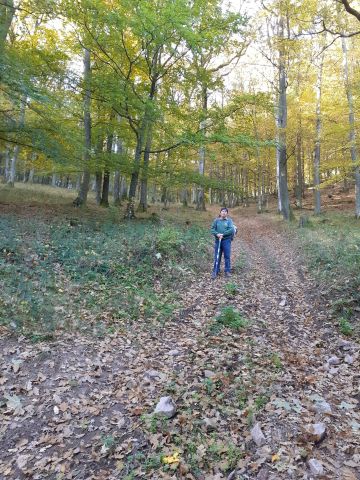 | A Kis-Száva-hegyet elhagyva, a Nagy-Száva-hegy találkozásánál balra fordultam, a gerinc irányába. A két hegy közötti kevésbé használt erdészeti út nyoma jól kivehető volt, még úgy is, hogy a lehullott levelek betakarták azt. Így mintegy 500m-t mentem ... | ![]() | |