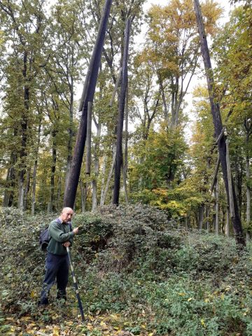 ![]() | Jó magas dombok (hegyek) látszottak, de egyértelmű volt, hogy nem ezekre, hanem valahol a mögötte lévő 611m magas hegyre kell felmenni. Szerencsére az út első felében - a völgyekben - még voltak erdészeti utak. Mennél beljebb mentem, - a lehullott levelek miatt - egyre kevésbé volt kivehető az "út". | |